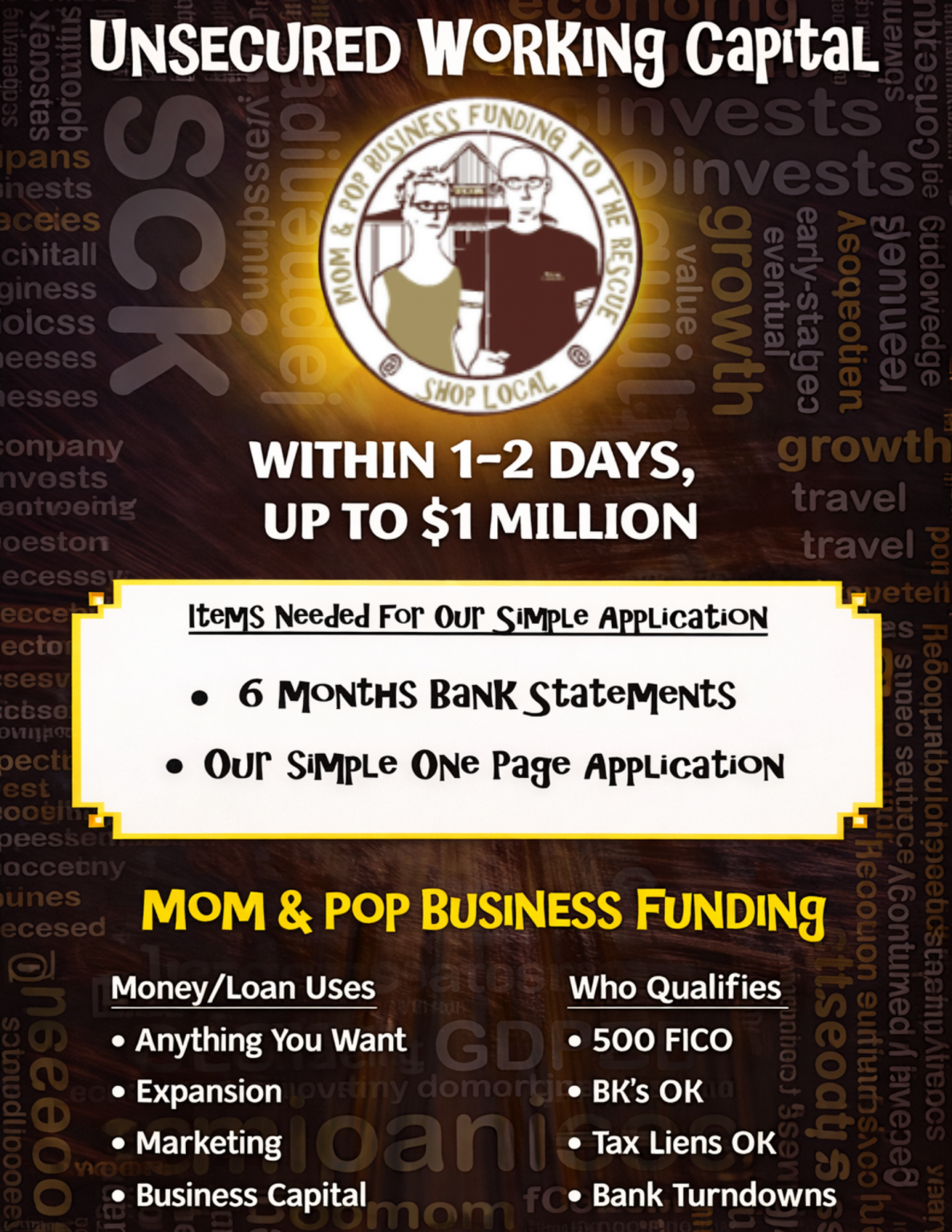We provide fast small business funding with a simple one-page application. Get approved for up to $1,000,000 in as little as 1-2 days, even if you’ve been turned down by banks or have credit challenges.
